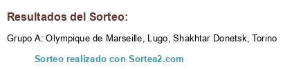 Lista de participantes: Atlético de Madrid, Athletic Club de Bilbao, Fenerbahçe, Villarreal.