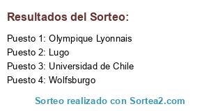 Lista de participantes: Olympique Lyonnais, Universidad de Chile, Wolfsburgo, Lugo.