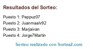 Lista de participantes: Juanmaalv92, Jorge7Martin, Marjaivan, Peppuz07.