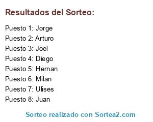 Lista de participantes: Diego, Joel, Jorge, Hernan, Milan, Ulises, Arturo, Juan.