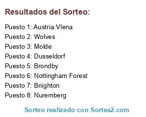 Lista de participantes: Nuremberg, Dusseldorf, Austria VIena, Wolves, Briighton, Nottingham Forest, Molde, Brondby.