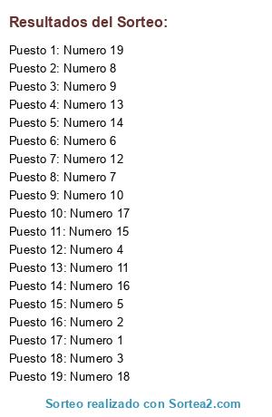 Lista de participantes: Numero 1, Numero 2, Numero 3, Numero 4, Numero 5, Numero 6, Numero 7, Numero 8, Numero 9, Numero 10, Numero 11, Numero 12, Numero 13, Numero 14, Numero 15, Numero 16, Numero 17, Numero 18, Numero 19, Numero 20.