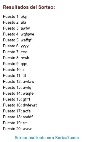 Lista de participantes: www, qqq, eee, rrr, ttt, yyyy, iii, okjj, gfrrf, weffgf, dwfewrt, waqfe, wqfgwe, awfw, afa, awfq, awfaw, agfa, rewh, ssddf.