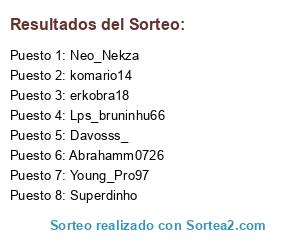 Lista de participantes: komario14, Lps_bruninhu66, erkobra18, Neo_Nekza, Davosss_, Abrahamm0726, Superdinho, Young_Pro97.