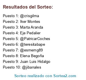 Lista de participantes: @esmemg89, @jibanales, @PatricarCoches, @teresitabape, @crisgilma, Marta Aranda, Elena Begoña, Juan Luis Hidalgo, Eje Pedalier, Iker Montes.