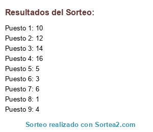 Resultados del sorteo: