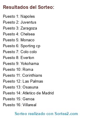 Lista de participantes: Atletico, Cordoba, Girondins, Napoles, Fiorentina, Celta, Villarreal o boca, Bayer, Psg, Betis, Zaragoza, Malaga, Deportivo, Rayo, Psv, Inter.
