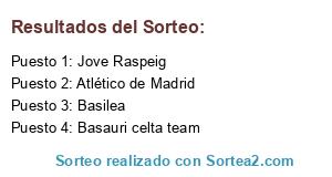 Lista de participantes: Basilea, Jove Raspeig, Atlético de Madrid, Basauri celta team.