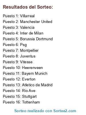 Lista de participantes: Vitesse, Juventus, Tottenham, Bayern Munich, Valencia, Montpellier o Manchester United, Villarreal, Inter de Milan, Everton, Heerenveen, Atletico de Madrid, Rio Ave, Psg, Stuttgart.
