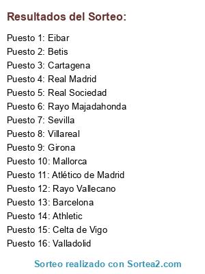 Lista de participantes: Cartagena, Atlético de Madrid, Athletic, Betis, Girona, Celta de Vigo, Eibar, Sevilla, Rayo Vallecano, Real Sociedad, Rayo Majadahonda, Mallorca, Real Madrid, Barcelona, Valladolid, Villareal.