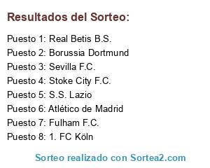 Lista de participantes: S.S. Lazio, Atlético de Madrid, Fulham F.C., Real Betis B.S., 1. FC Köln, Stoke City F.C., Borussia Dortmund, Sevilla F.C..