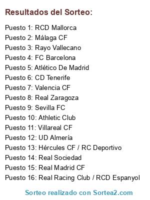 Resultados del sorteo: