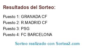 Lista de participantes: PSG, GRANADA CF, FC BARCELONA, R.MADRID CF.