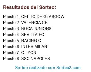 Lista de participantes: O.LYON, VALENCIA CF, SSC NAPOLES, CELTIC DE GLASGOW, SEVILLA FC, INTER MILAN, BOCA JUNIORS, RACING C..