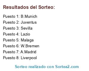 Lista de participantes: Juventus, Liverpool, Sevilla, W.Bremen, B.Munich, A.Madrid, Malaga, Lazio.