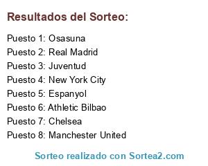 Lista de participantes: Espanyol, New York City, Osasuna, Juventud, Real Madrid, Chelsea, Athletic Bilbao, Manchester United.