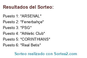 Lista de participantes: *Athletic Club*, *Lazio*, *SD Tenisca*, *Fenerbahçe*, *Real Betis*, *ARSENAL*, *PSG*, *Tigres*, *CORINTHIANS*, *Real Madrid*, Córdoba.