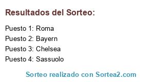 Lista de participantes: Sassuolo, Chelsea, Roma, Bayern.