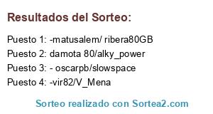 Lista de participantes: damota 80/alky_power, - oscarpb/slowspace, -daniambca/daniambca, -gertar44/gertar4s, -opevil/opevil, -Erbez08/erbez08, -maosh/maosh, -javinm/eurogetafe, -vir82/V_Mena, -matusalem/ ribera80GB.