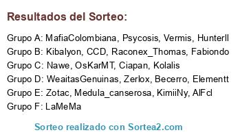 Lista de participantes: Vermis, WeaitasGenuinas, Kibalyon, Elementt, Becerro, Ciapan, LaMeMa, Zerlox, KimiiNy, AlFcl, Hunterll, Zotac, MafiaColombiana, Kolalis, Psycosis, OsKarMT, Nawe, Fabiondo, Medula_canserosa, Raconex_Thomas, CCD.