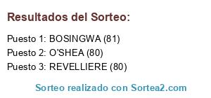 Lista de participantes: REVELLIERE (80), BOSINGWA (81), O'SHEA (80).