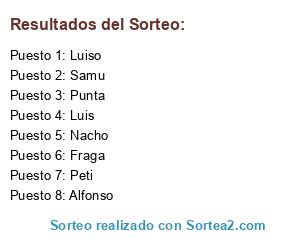 Lista de participantes: Fraga, Punta, Peti, Luiso, Luis, Samu, Nacho, Alfonso.