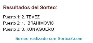 Lista de participantes: 1. IBRAHIMOVIC, 2. TEVEZ, 3. KUN AGUERO.