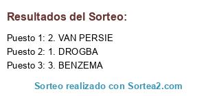 Lista de participantes: 1. DROGBA, 2. VAN PERSIE, 3. BENZEMA.