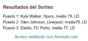 Lista de participantes: Glen Johnson, Liverpool, media79, LD, Kyle Walker, Spurs, media 79, LD, Danilo, FC Porto, media 77, LD.