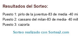 Lista de participantes: pirlo de la juventus-83 de media -40 millones, cassano del milan-83 de media- 40 millones, cazorla.