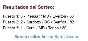 Lista de participantes: 1 - Cerci / MD / Torino / 80, 2 - Cardozo / DC / Benfica / 82, 3 - Pienaar / MD / Everton / 80.
