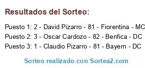 Lista de participantes: 1 - Claudio Pizarro - 81 - Bayern - DC, 2 - David Pizarro - 81 - Fiorentina - MC, 3 - Oscar Cardozo - 82 - Benfica - DC.