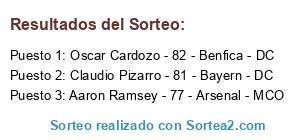 Lista de participantes: Aaron Ramsey - 77 - Arsenal - MCO, Claudio Pizarro - 81 - Bayern - DC, Oscar Cardozo - 82 - Benfica - DC.