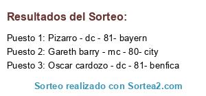Lista de participantes: Gareth barry - mc - 80- city, Oscar cardozo - dc - 81- benfica, Pizarro - dc - 81- bayern.
