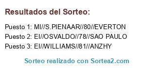 Lista de participantes: EI//WILLIAMS//81//ANZHY, EI//OSVALDO//78//SAO PAULO, MI//S.PIENAAR//80//EVERTON.