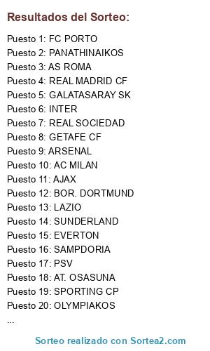 Resultados del sorteo:
