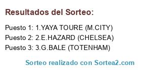 Lista de participantes: 1.YAYA TOURE (M.CITY), 2.E.HAZARD (CHELSEA), 3.G.BALE (TOTENHAM).