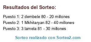 Lista de participantes: 1 Mkhitaryan 82 - 40 millones, 2 dembele 80 - 20 millones, 3 lamela 81 - 30 millones.