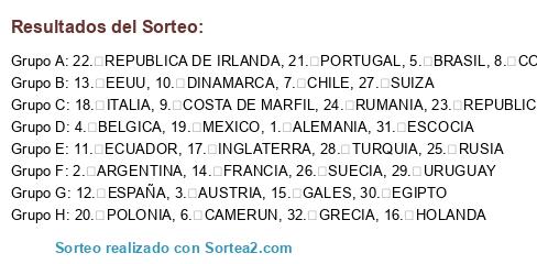 Resultados del sorteo: