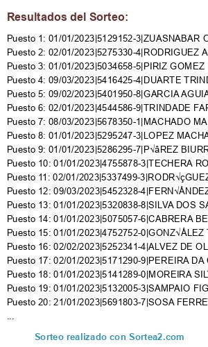 Resultados del sorteo: