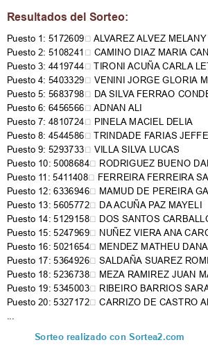 - Puesto 30: 5515330 MARTINS RODRIGUEZ SEBASTIAN AUGUSTO