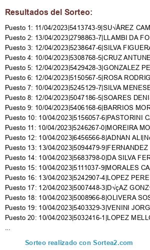 - Puesto 2: 13/04/2023|2798863-7|LLAMBI DA FONSECA SILVANA MARIA|No|