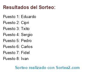 Lista de participantes: Eduardo, Carlos, Pedro, Ivan, Txito, Cipri, Fidel, Sergio.