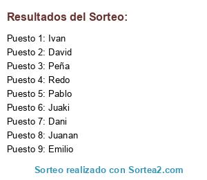 Lista de participantes: Juaki, Pablo, Redo, Juanan, Peña, Emilio, David, Ivan, Dani.
