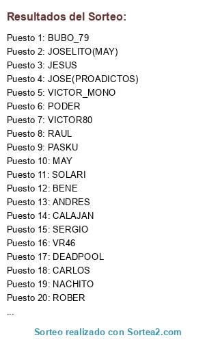 Lista de participantes: De ultimo al primero, Al revés, Por sorteo, Al más rápido.