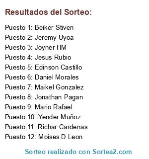Lista de participantes: Jesus Rubio, Daniel Morales, Maikel Gonzalez, Jonathan Pagan, Edinson Castillo, Richar Cardenas, Mario Rafael, Jeremy Uyoa, Joyner HM, Beiker Stiven, Moises D Leon, Yender Muñoz.