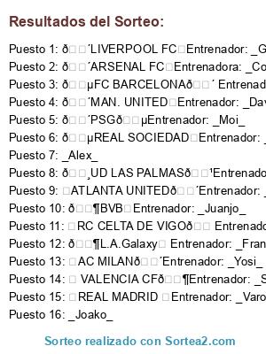 Resultados del sorteo:
