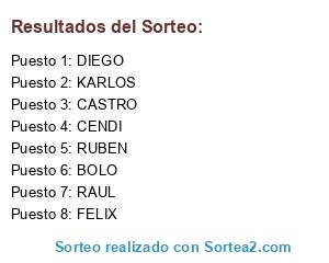 Lista de participantes: CASTRO, CENDI, KARLOS, BOLO, RAUL, DIEGO, RUBEN, FELIX.