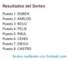 Lista de participantes: BOLO, CENDI, CASTRO, KARLOS, RAUL, DIEGO, RUBEN, FELIX.