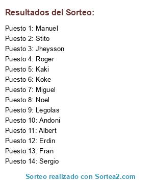 Lista de participantes: Kaki, Sergio, Miguel, Erdin, Fran, Stito, Jheysson, Manuel, Noel, Koke, Legolas, Andoni, Roger, Albert.